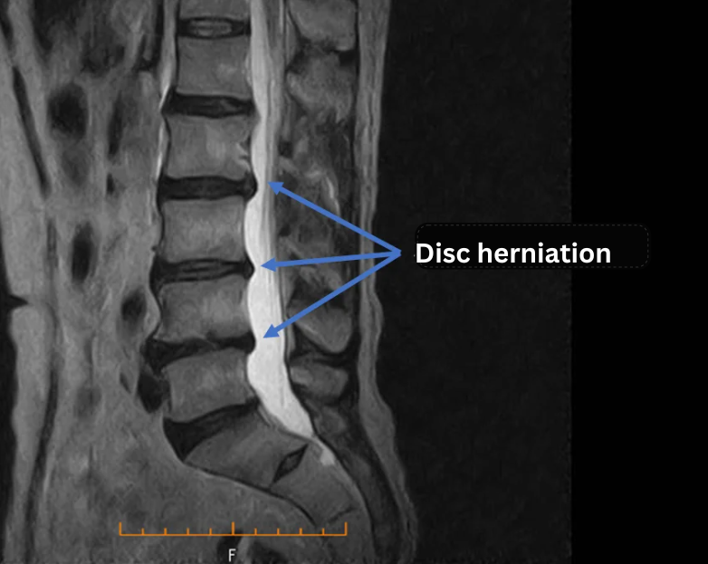 - Herniated discs were observed in L2/3, 3/4, 4/5.