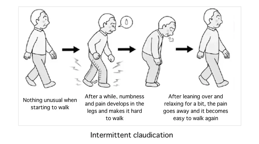 While walking, pain or numbness appears in the buttocks or legs. After resting, symptoms improve, but they return as soon as walking resumes. Other common signs include discomfort or pain when bending backward