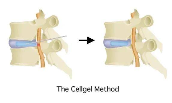 This method involves injecting a specialized agent into the disc fissure, which then turns into a gel and repairs the crack, providing fundamental treatment. A key feature is that the disc volume is preserved, as the agent remains in the disc as a gel-like implant after treatment.