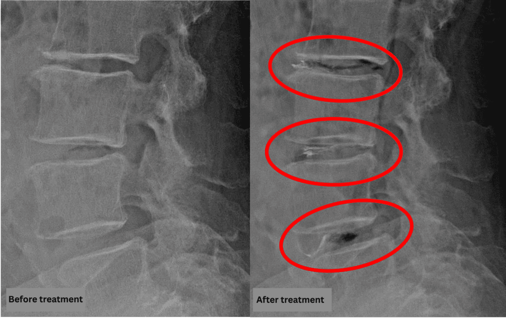 After consulting with the patient, the Cellgel Method was performed on L2/3, 3/4 and 4/5.