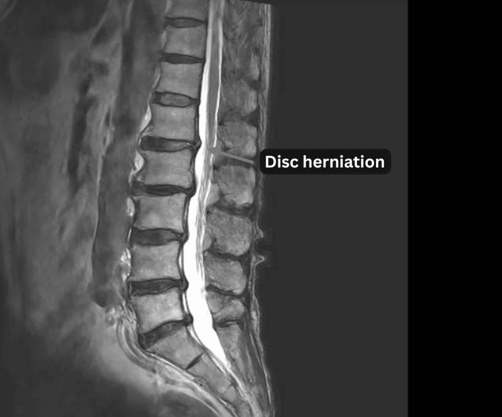 ・The L1/2 herniated disc was identified as a likely primary cause of the symptoms.