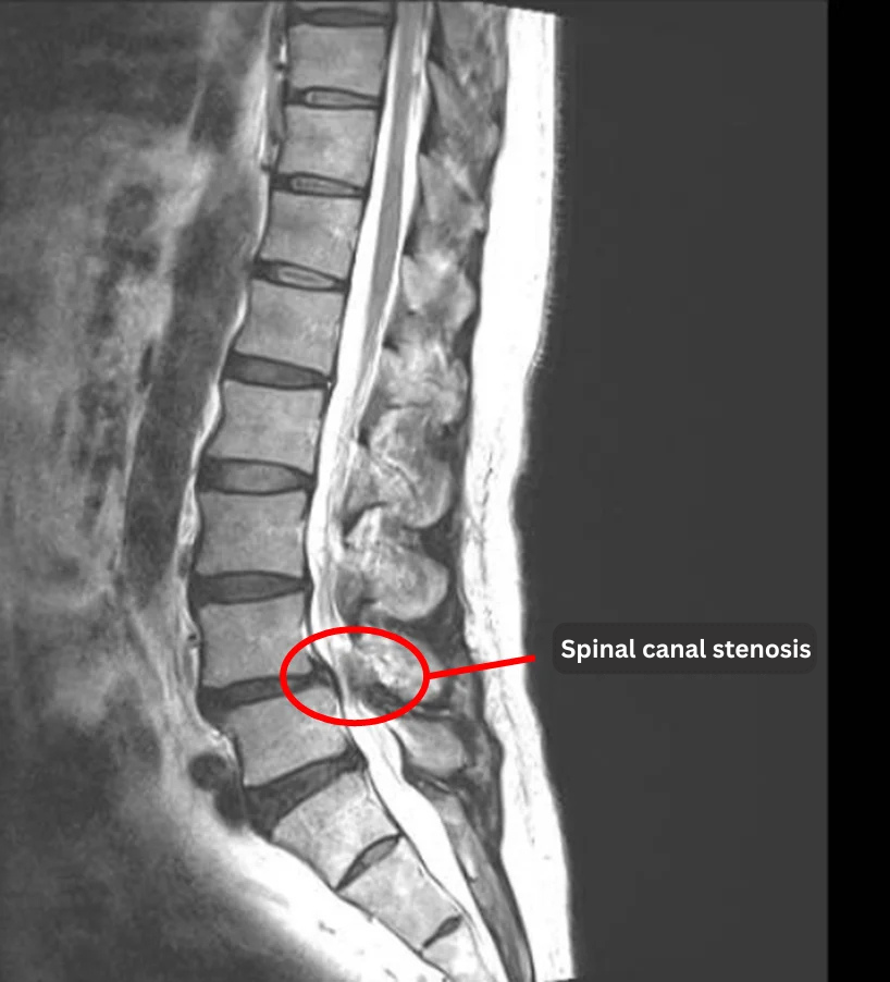 The patient began experiencing lower back pain at age 60. Over time, walking began to trigger numbness in his lower limbs.