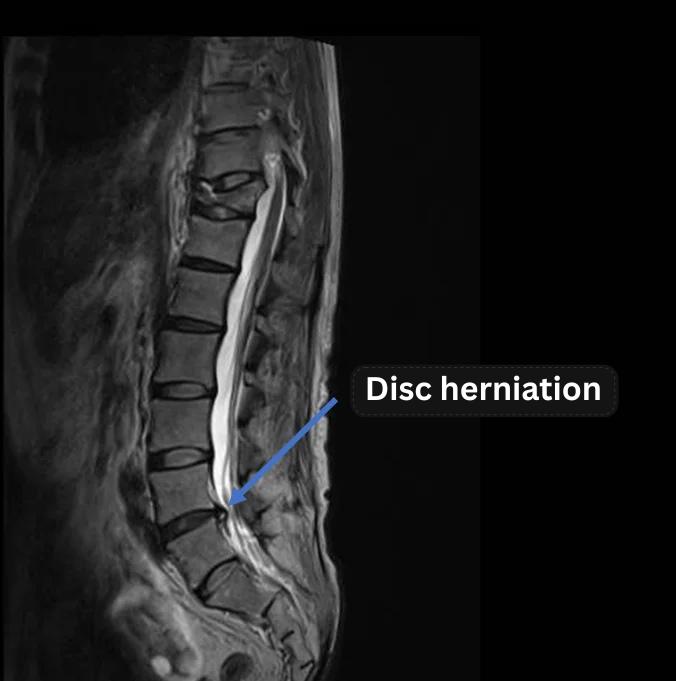 - The patient was diagnosed with lumbar disc herniation and sciatica in 2020.