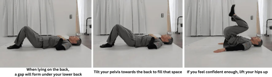 1. Lie on your back and check whether there is a gap between your lower back and the floor.